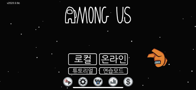 어몽어스가 지원하는 언어는 영어 뿐만 아니라 포르투칼어, 스페인어, 러시아어, 한국어를 지원하고 있습니다. 게임에서 5가지 언어를 지원하는 것은 흔치않은 일이지만 어몽어스는 지원을 하고 있습니다. 먼저 게임을 실행하면 메인메뉴 로컬/ 온라인/ 하워 투 플레이/ 프리 플레이 4가지와 밑에 설정 아이콘 5가지를 확인할 수 있습니다.